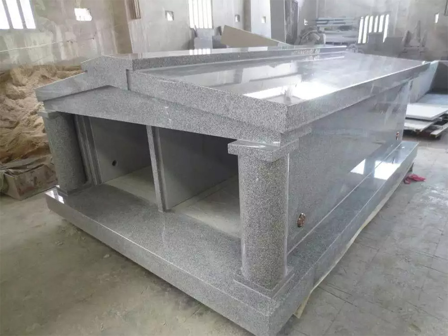 Cemetery Mausoleum with made in popular grey granite G603 two crypts for funeral. Read More