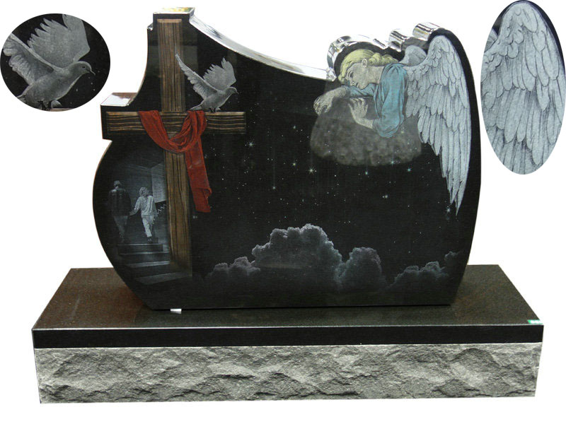 1. Product Name: Black Granite Etched Cemetery Angel Monument With Dove