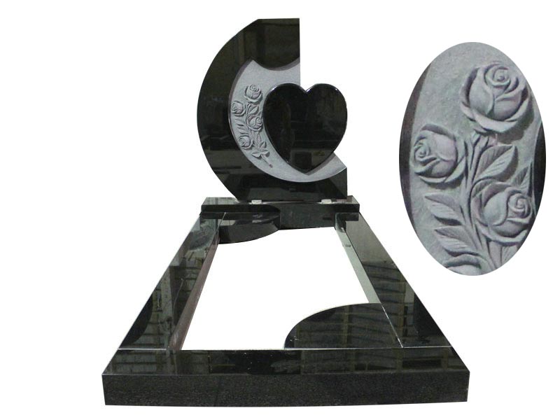1. Product Name: Black Granite Carved Rose And Heart Headstone Designs