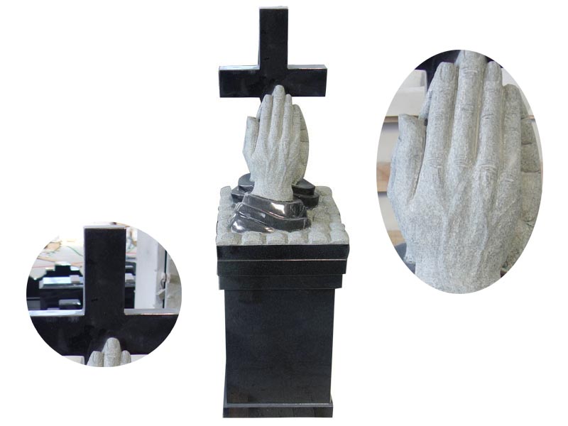 Black Granite Cross Headstones For Graves With Blessed Hands