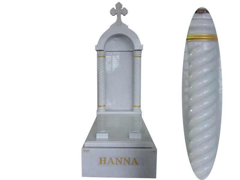 The Customize Cross Headstone featuring in carving two columns for HANNA and made in beautiful White Marble.