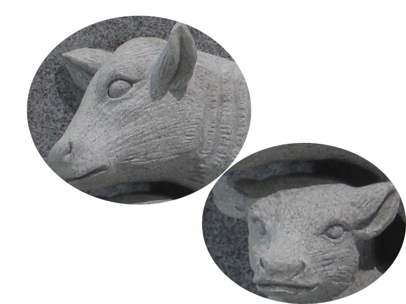 This is a hand carved 100% of headstone with two cows in grey granite and affordable price.