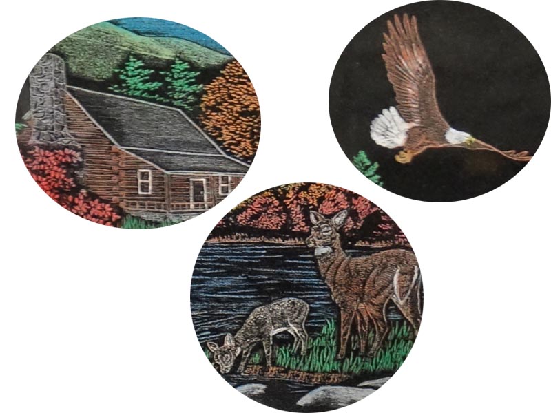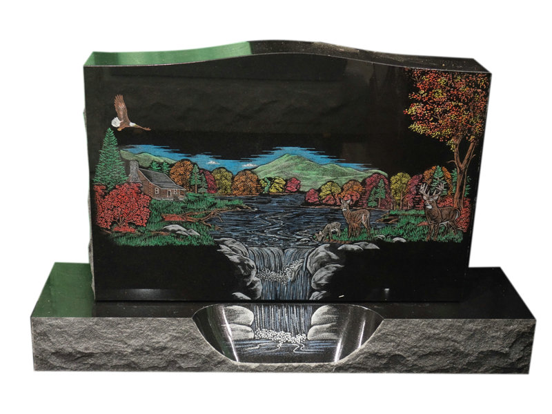 This Is A Very Beautiful Memorial In Black Granite With Deer And Eagle And Etched Landscape Scene.