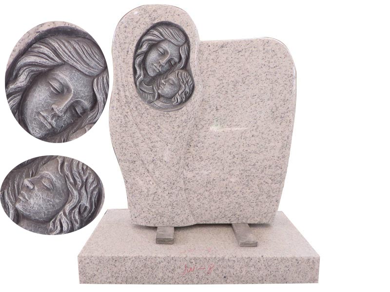 1. Product Name: Carved Holy Mary And Baby Jesus Memorial In White Granite
