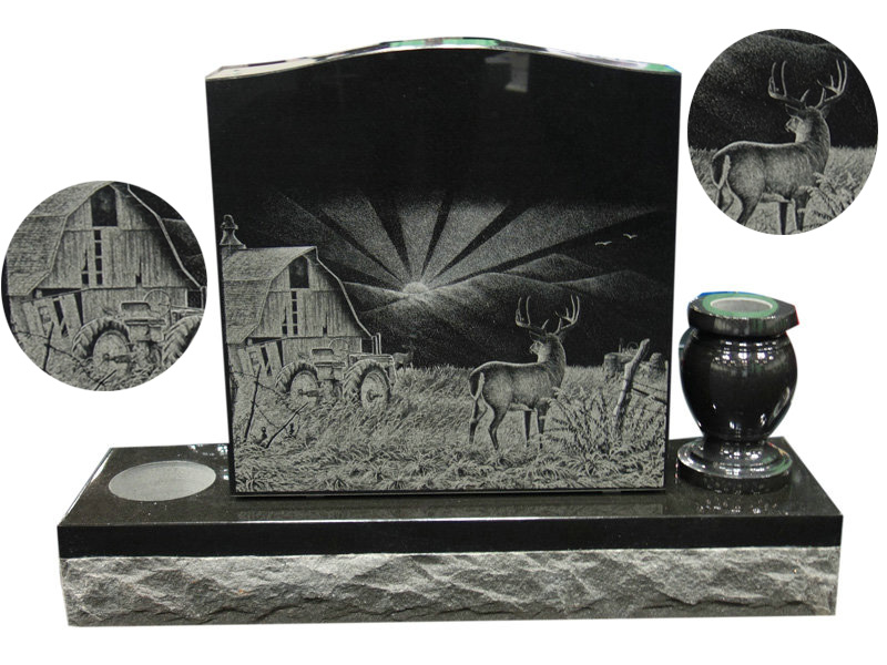 Note: Dense black granite, with a choice of hand etched scene.